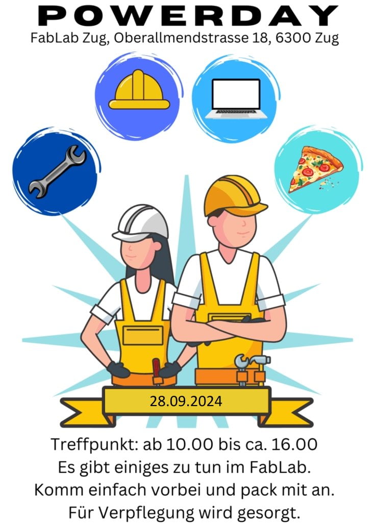 Am Samstag 28. September findet der nächste Power Day im FabLab statt. Komm vorbei und packe tatkräftig mit an, denn es gibt einiges zu tun.