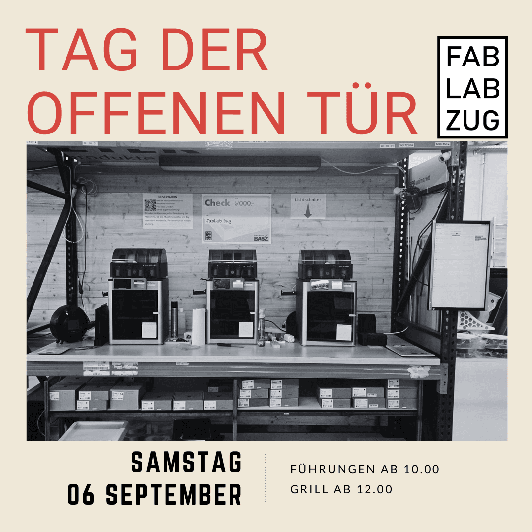 Wir präsentieren das FabLab der Zuger Bevölkerung sowie unseren Gönnern. Dazu gibt es etwas vom Grill und Getränke.